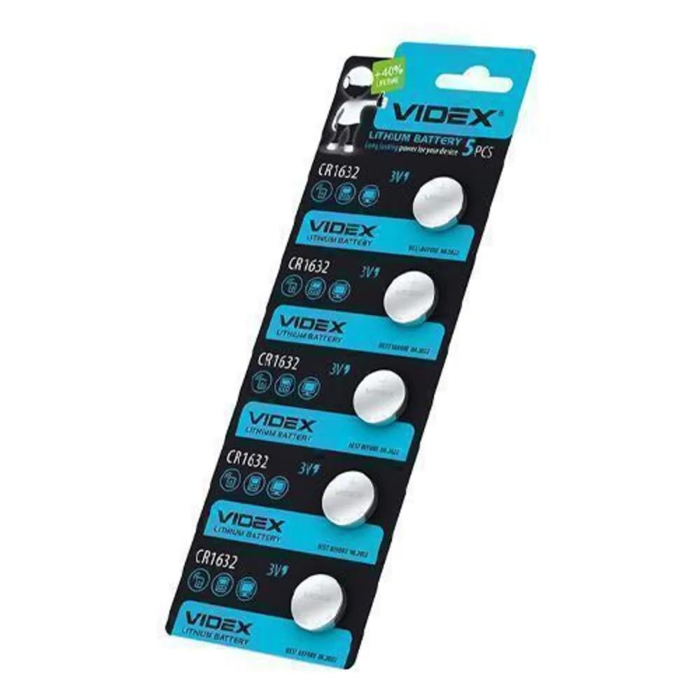 Батарейка таблетка CR1632 Videx, 3V, 5 шт, літієва