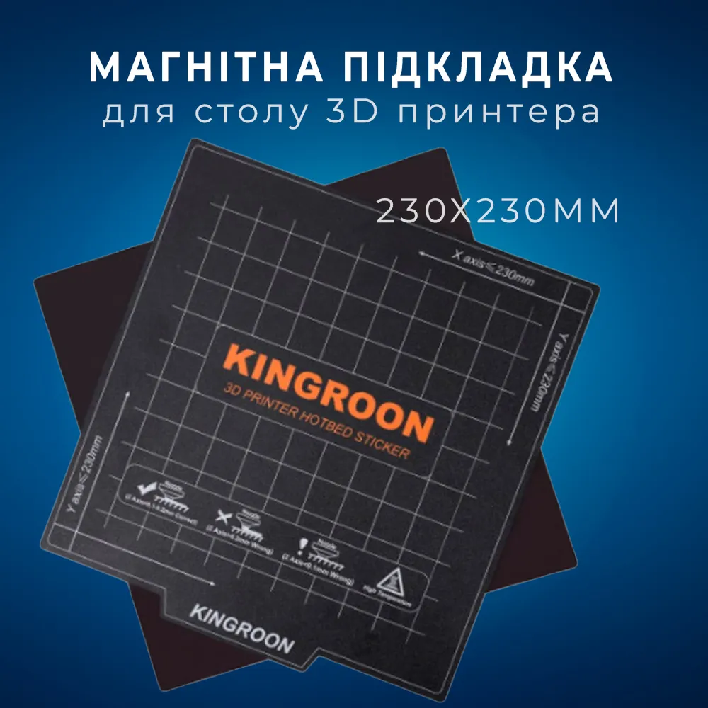 Теги: магнітна підкладка, підкладка 230х230, двостороння, Kingroon, стіл 3D принтера, робоча поверхня, магнітна основа, 3D друк, витратні матеріали, заміна підкладки