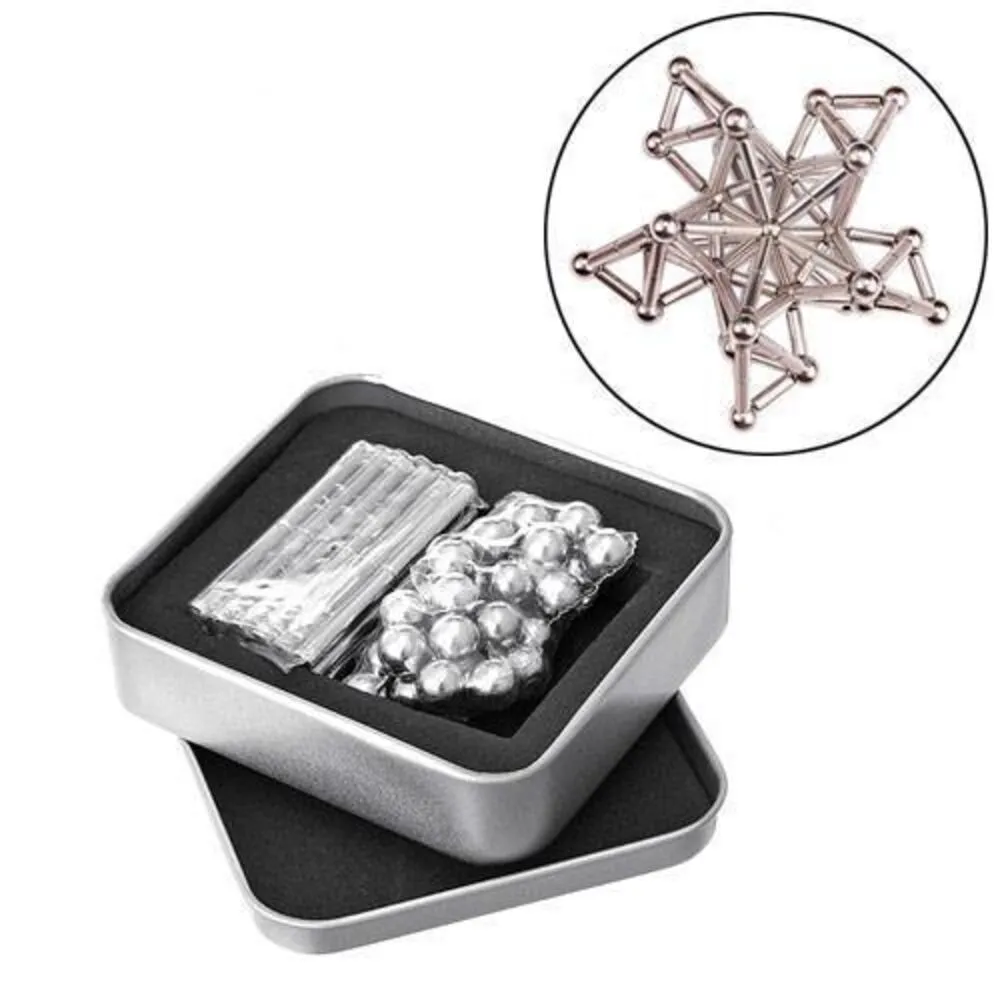 Магнітний конструктор бакібарс – це аналог неокуба, який складається не лише з 27 кульок, але й 36 паличок. Конструктор-головоломка дозволяє створювати різноманітні багатогранні фігури. Зберігається бакібарс у спеціальній коробці, завдяки чому жодна деталь "не втече".