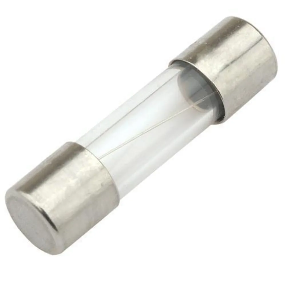 Скляний циліндричний запобіжник для захисту електричного кола від короткого замикання.